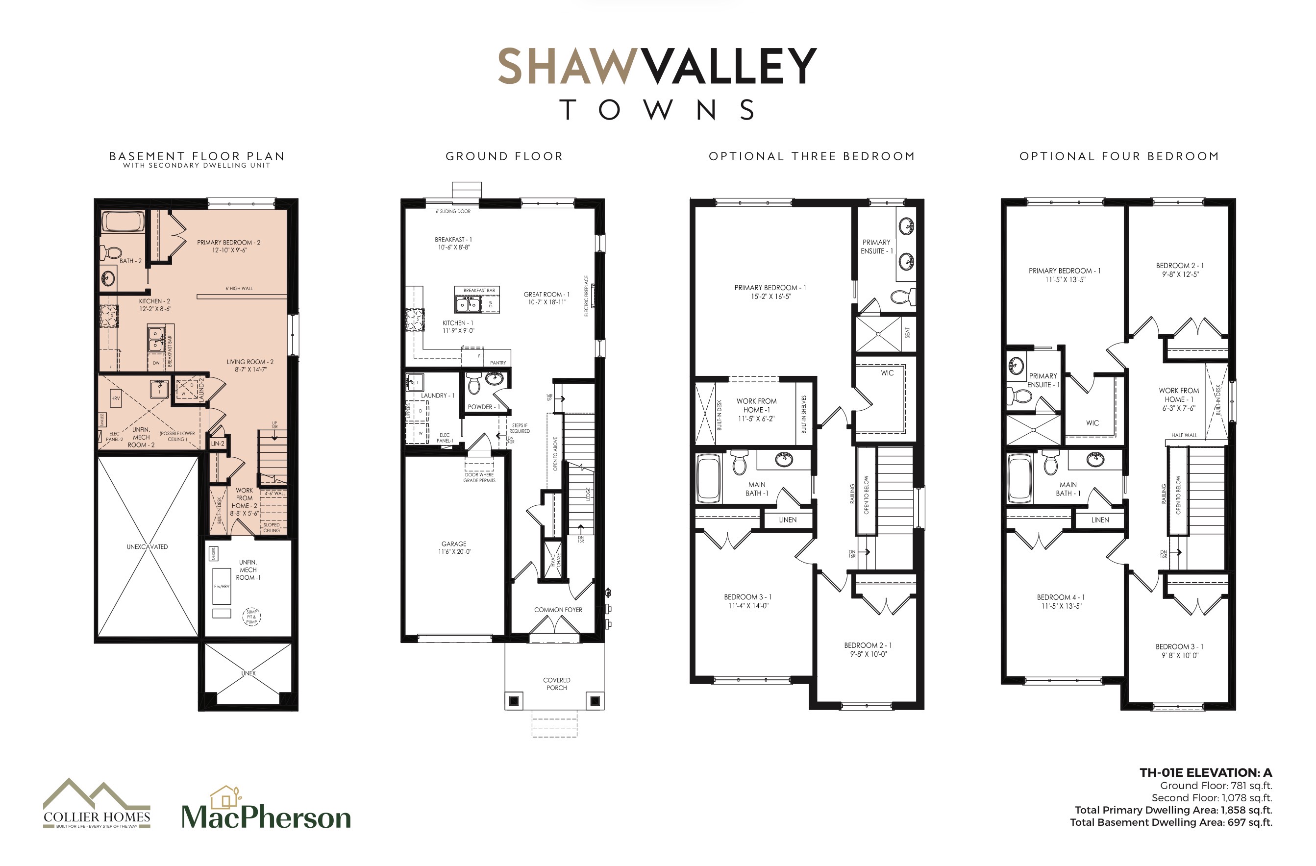 Modern 3 or 4 bedroom townhomes with basement Additional Residential Units for future planning, multi-generational living, or income potential.
